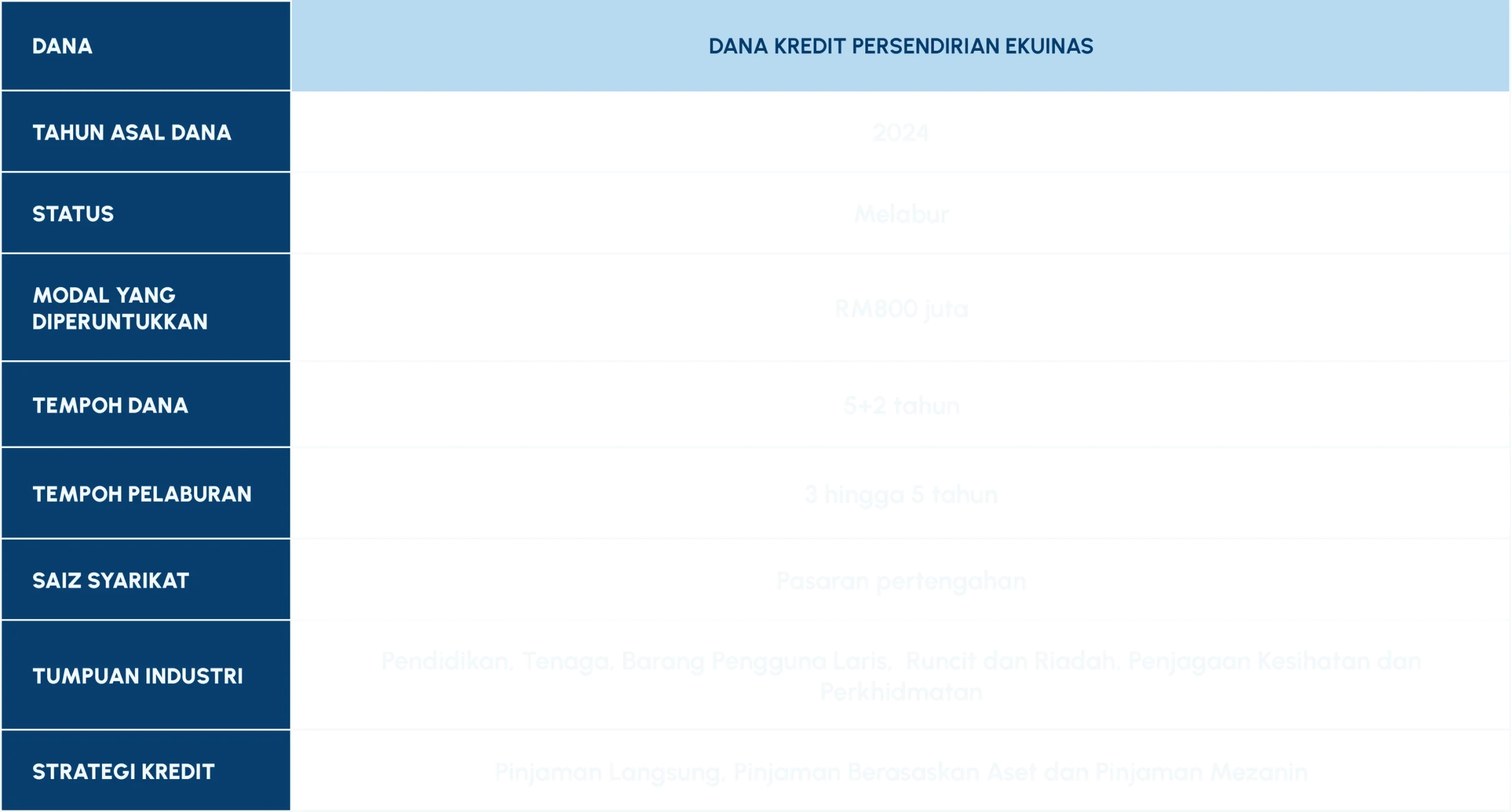 Dana Kredit Persendirian kami menyediakan penyelesaian pembiayaan yang mematuhi Syariah, khusus dan disesuaikan untuk syarikat pasaran pertengahan di Malaysia.